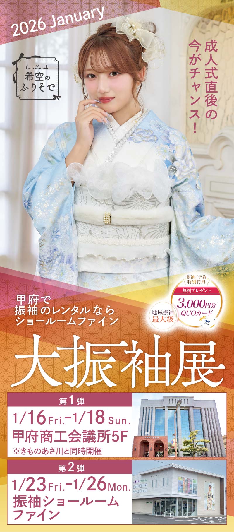 振袖ショールームファインでは当社が取得した個人情報の取扱いに関し、個人情報の保護に関する法律、個人情報保護に関するガイドライン等の指針、その他個人情報保護に関する関係法令を遵守致します。