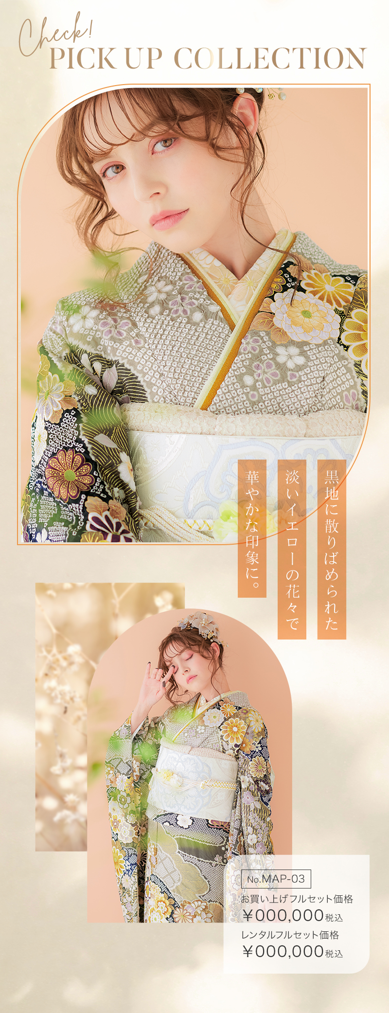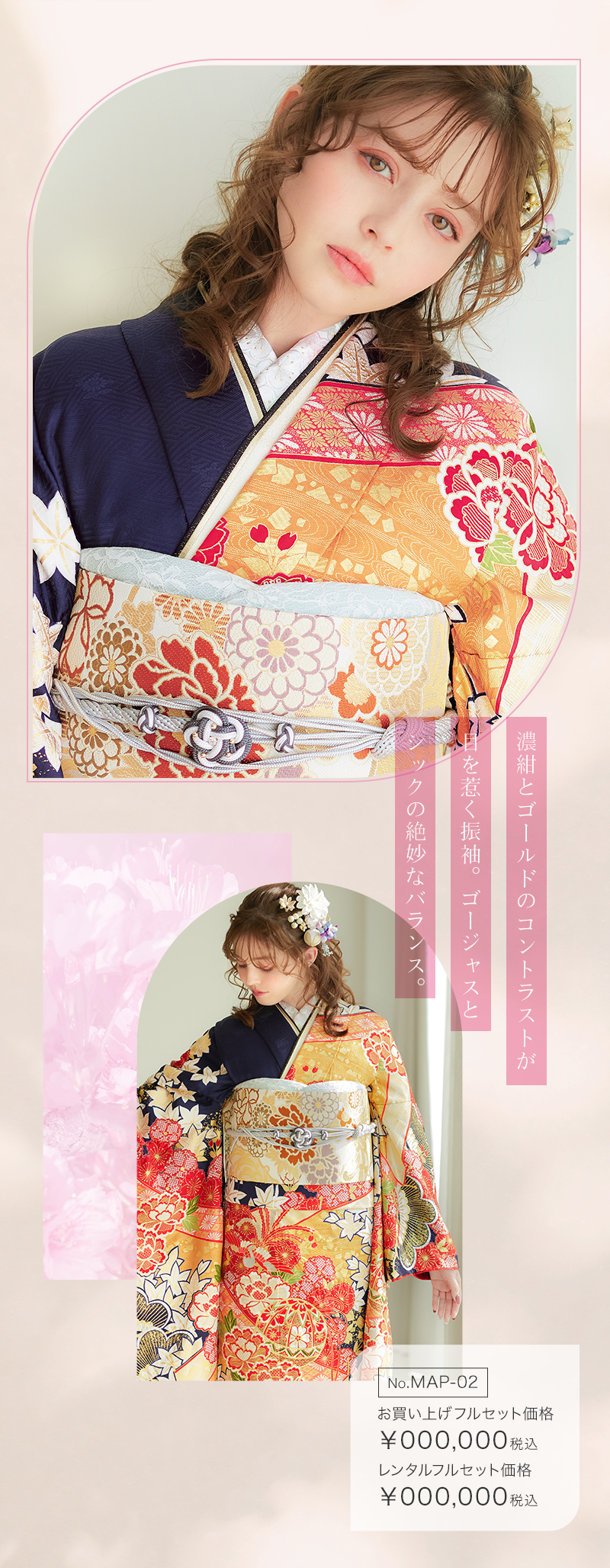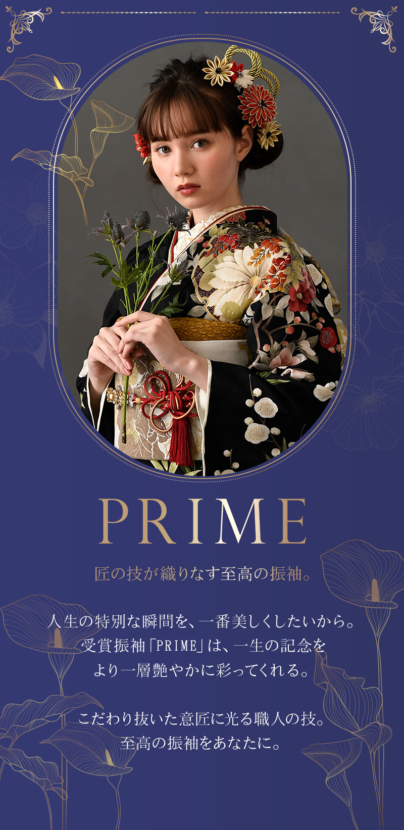 振袖の上で咲き誇る花々、 繊細に彩られた刺繍たち。 絶妙な組み合わせで生み出された振袖は、 優美さのなかに強さを秘めている。 Ma Minette Premiumは 今の”私”にふさわしい、 ロマンティックで可憐な 振袖コレクション。