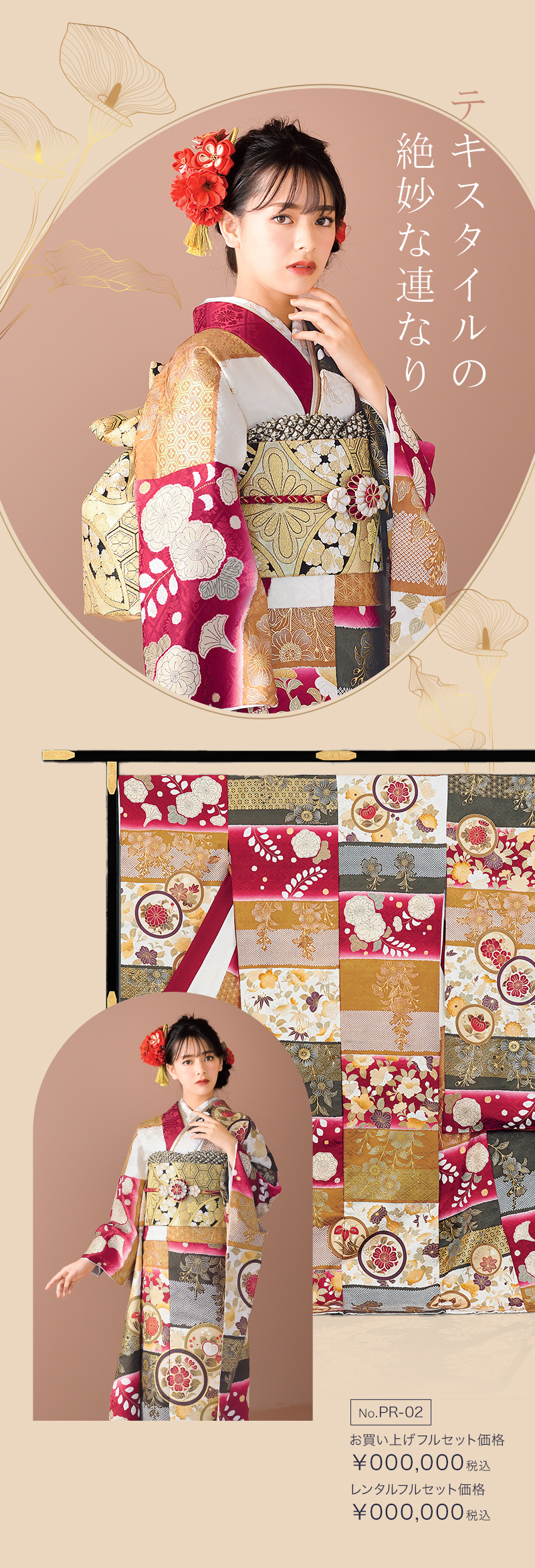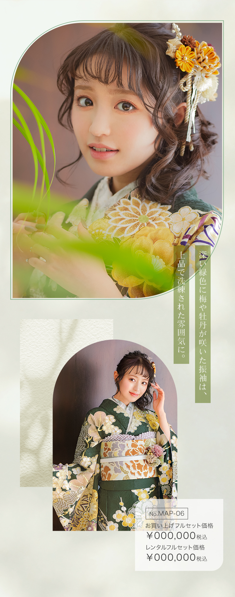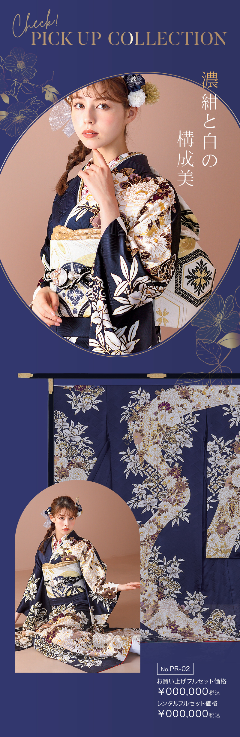 振袖の上で咲き誇る花々、 繊細に彩られた刺繍たち。 絶妙な組み合わせで生み出された振袖は、 優美さのなかに強さを秘めている。 Ma Minette Premiumは 今の”私”にふさわしい、 ロマンティックで可憐な 振袖コレクション。
