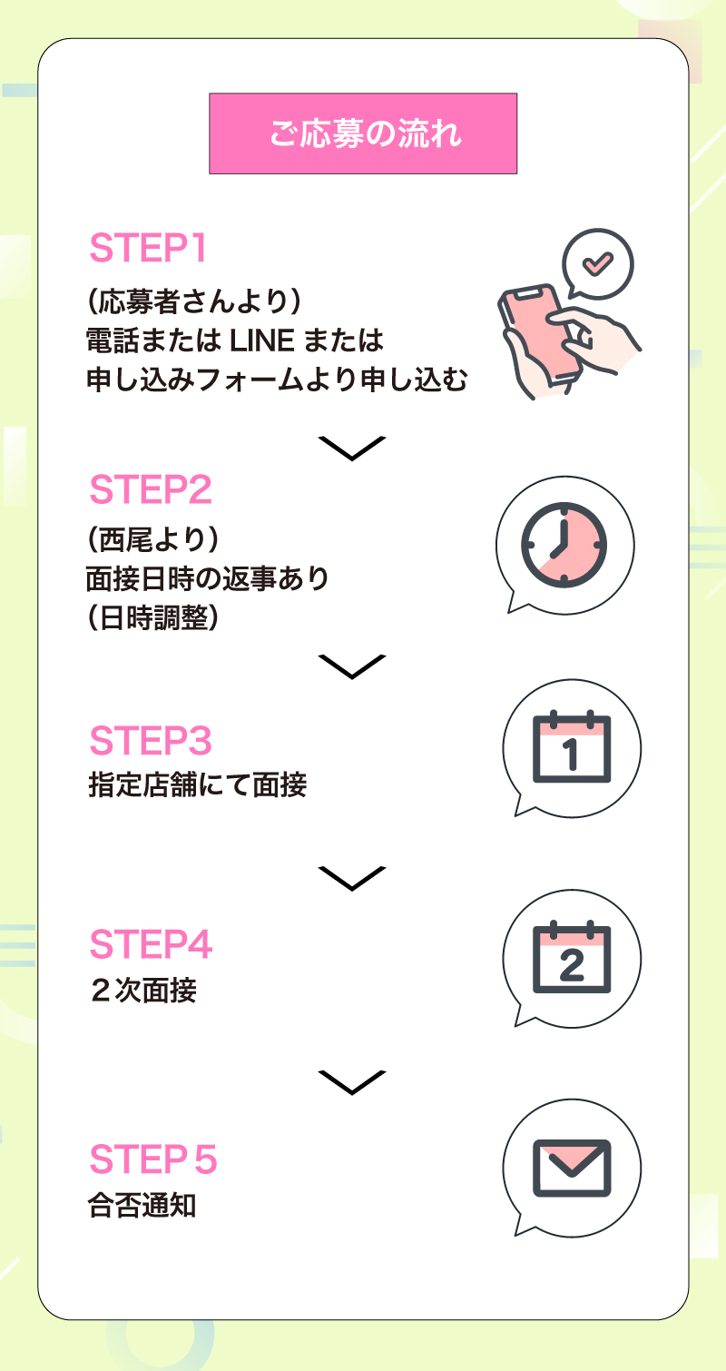 面接日時のご希望を承り、当店からお客さまに折り返しご連絡した上で、面接日時を確定させていただいております。