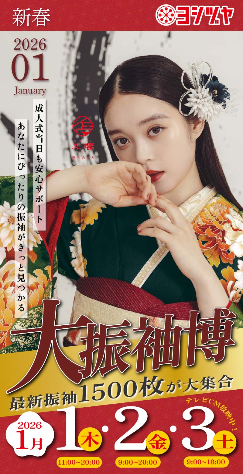 振袖のご予約は成人式の3か月前まで(レンタルなら1か月前まで)であれば可能でございます。成人式当日の着付け時間や振袖の柄はご成約順に埋まっていってしまうため、できるだけ早めにご予約いただくことをおすすめします。