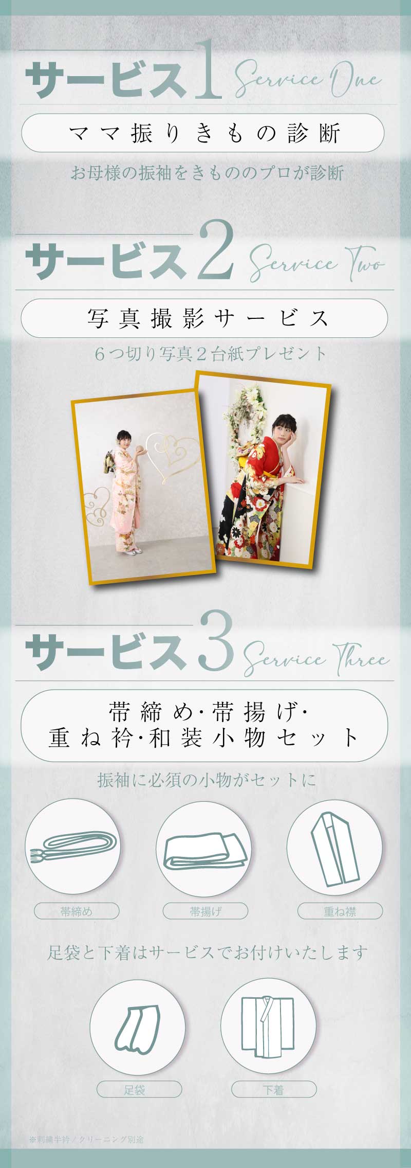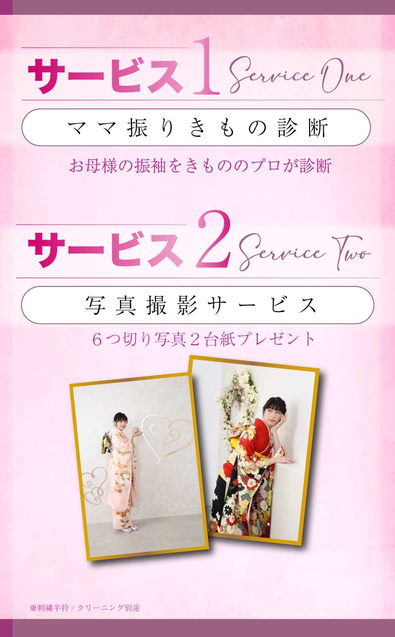 撮影会や成人式当日のお手伝い無しで小物コーディネート相談・寸法相談・加工相談のみは可能です。